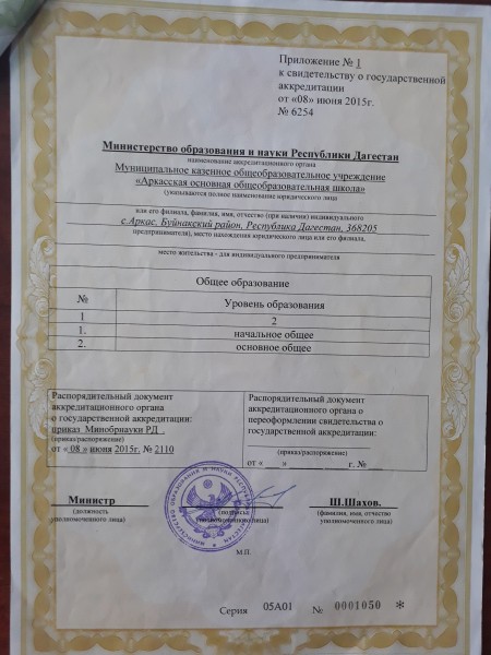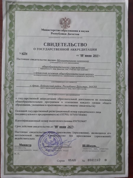 | Адрес местонахождения образовательной организации* | 368205, Буйнакский район, с.Аркас улица И.Шамиля 1 |